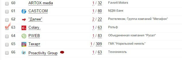 В Едином рейтинге ведущих веб-студий Рунета за 2014 год мы поднялись на 12 позиций и заняли 60 строчку: